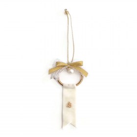 Γούρι κύκλος με πέρλα, νούμερο 25 για το νέο έτος και λευκές βελούδινες κορδέλες.