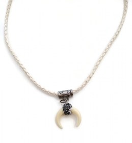 Χειροποίητο μακρύ κολιέ Κέρατο σε λευκό δερμάτινο λουράκι. Μπορεί να φορεθεί και ως κοντό κολιέ